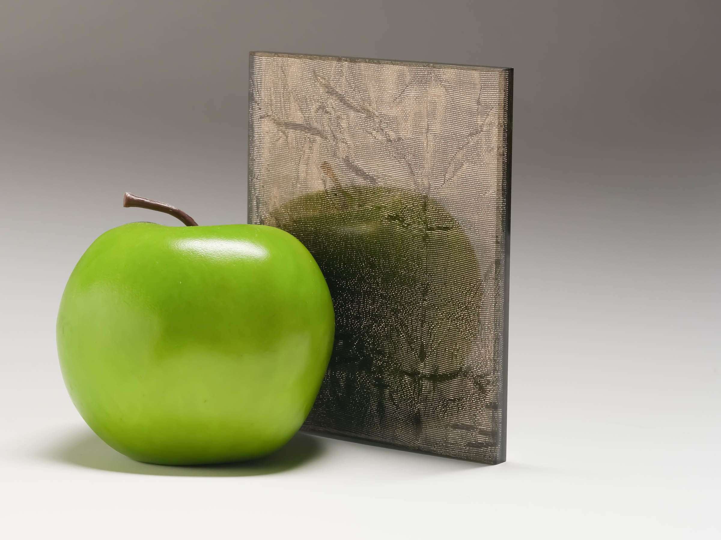 Multiple customizations come together to create this dark and dreamy wall cladding, including a custom fabric interlayer and custom Interpainted™ color.