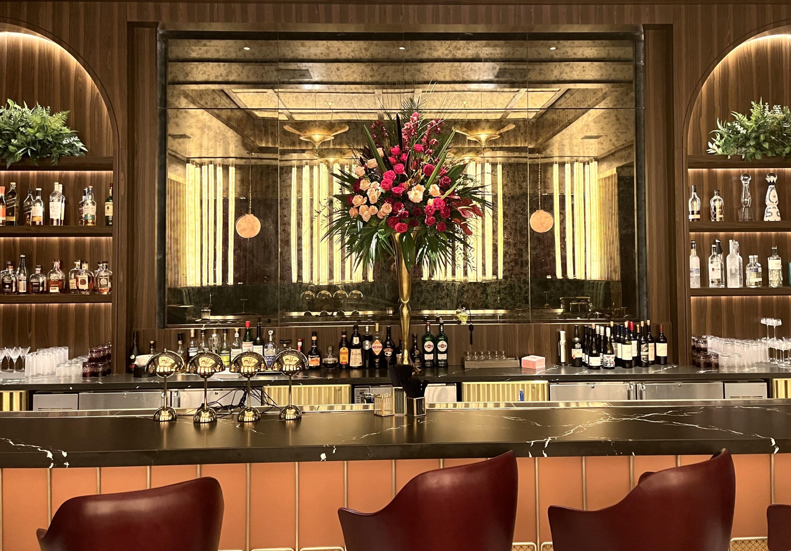 For the Nightcap Lounge, Archetype provided laminated antique mirror to serve as a feature wall behind the bar, a perfect finish to the vintage glamour of the space.